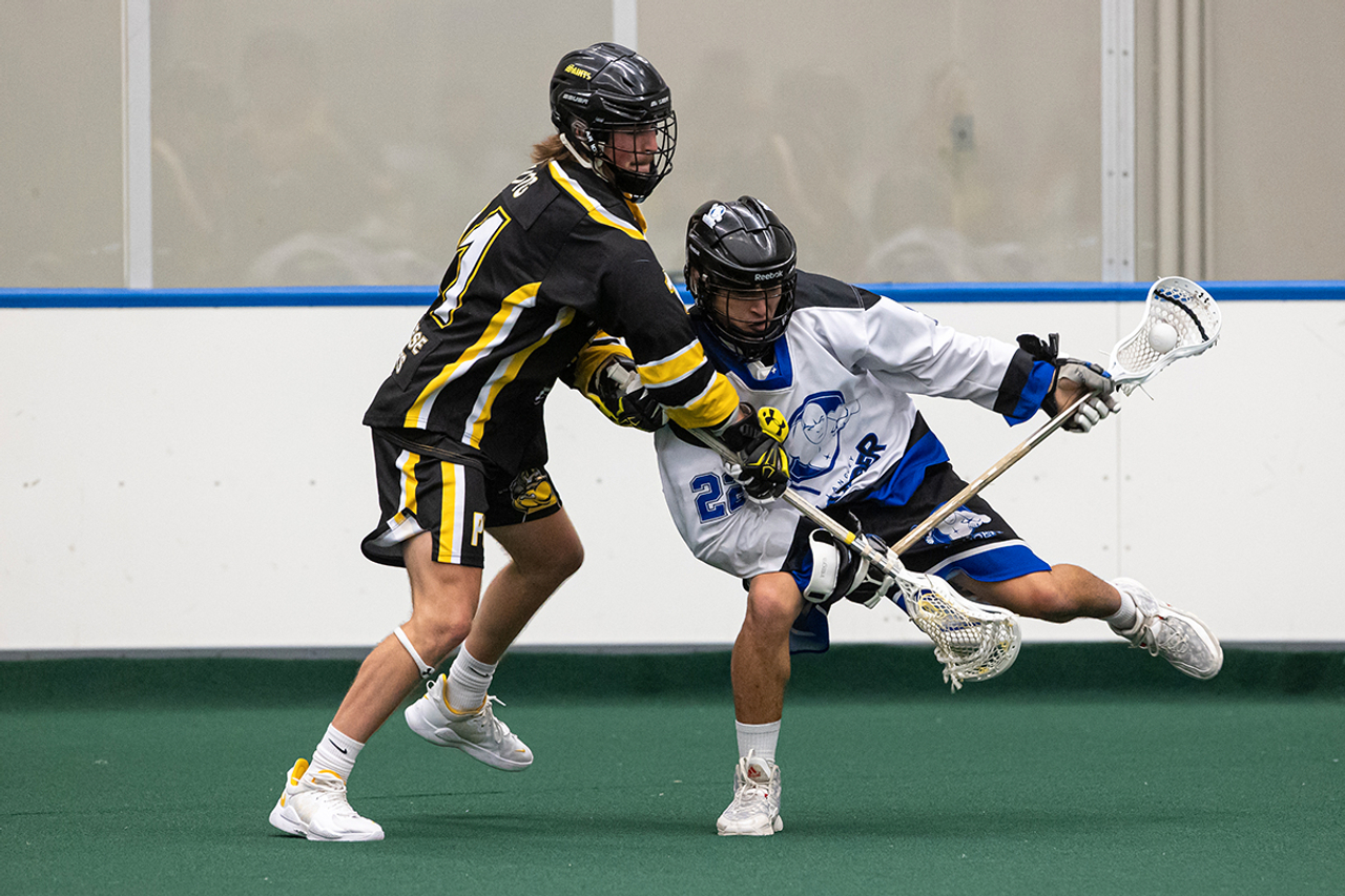 Trevayne Hunter (right, in action for the Langley Junior A Thunder) is back in a Thunder uniform following his acquisition from the Burnaby Lakers ahead of the 2026 Western Lacrosse Association season. Damon James file photo